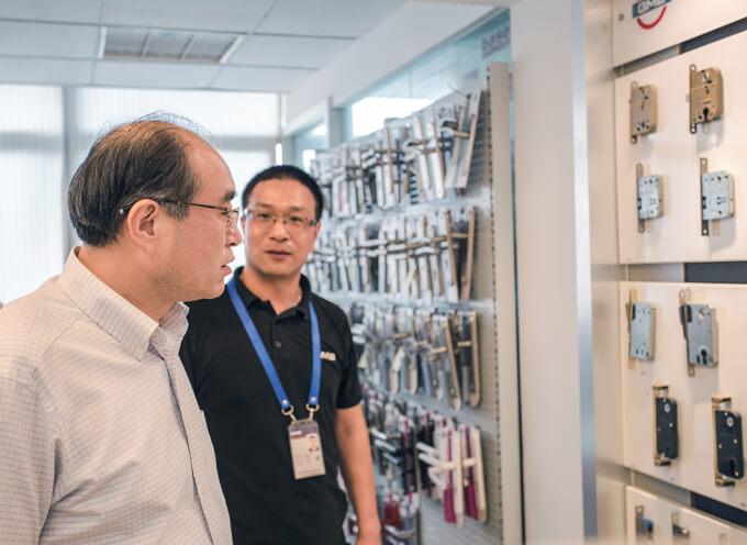 Г-н Сюй посетил офис GMB, образец и испытательную лабораторию, сопровождающую г-жа Лидию Сюй и г-н Бенни Чен.